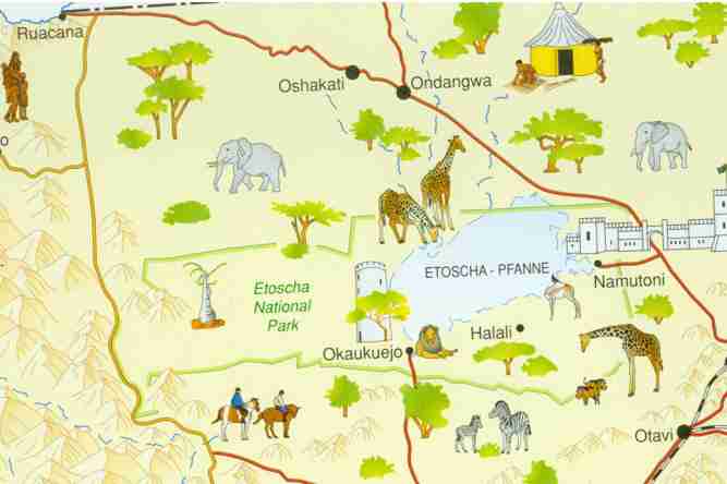 Fahrstrecke nach Okaukuejo, die uns Jan empfohlen hatte. Wie auf vielen Strecken zuvor begegneten wir bis kurz vor Etohsa keinem